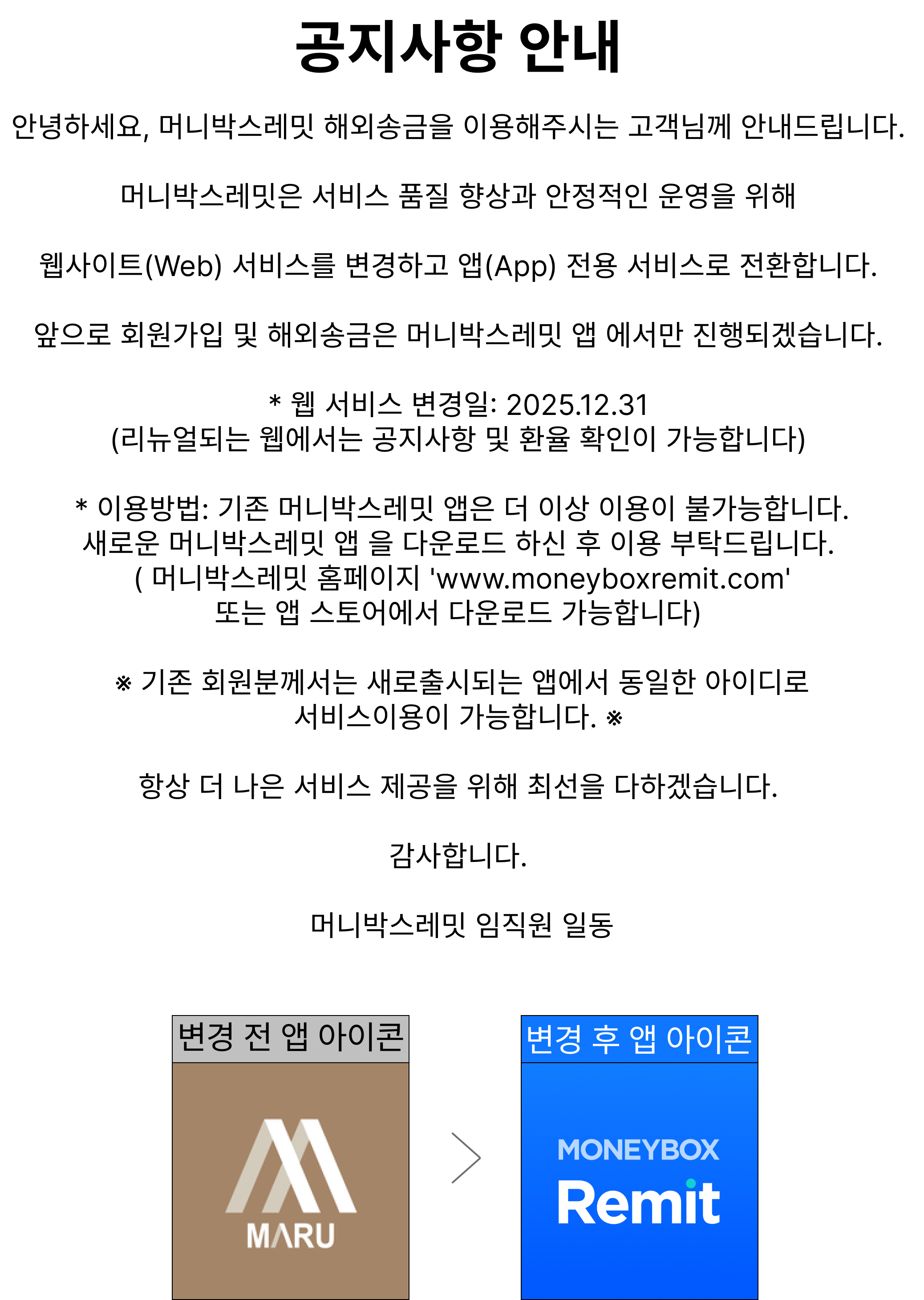 당발송금 가능하게되면 머니박스레밋 홈페이지를 통해 공지해드리겠습니다.